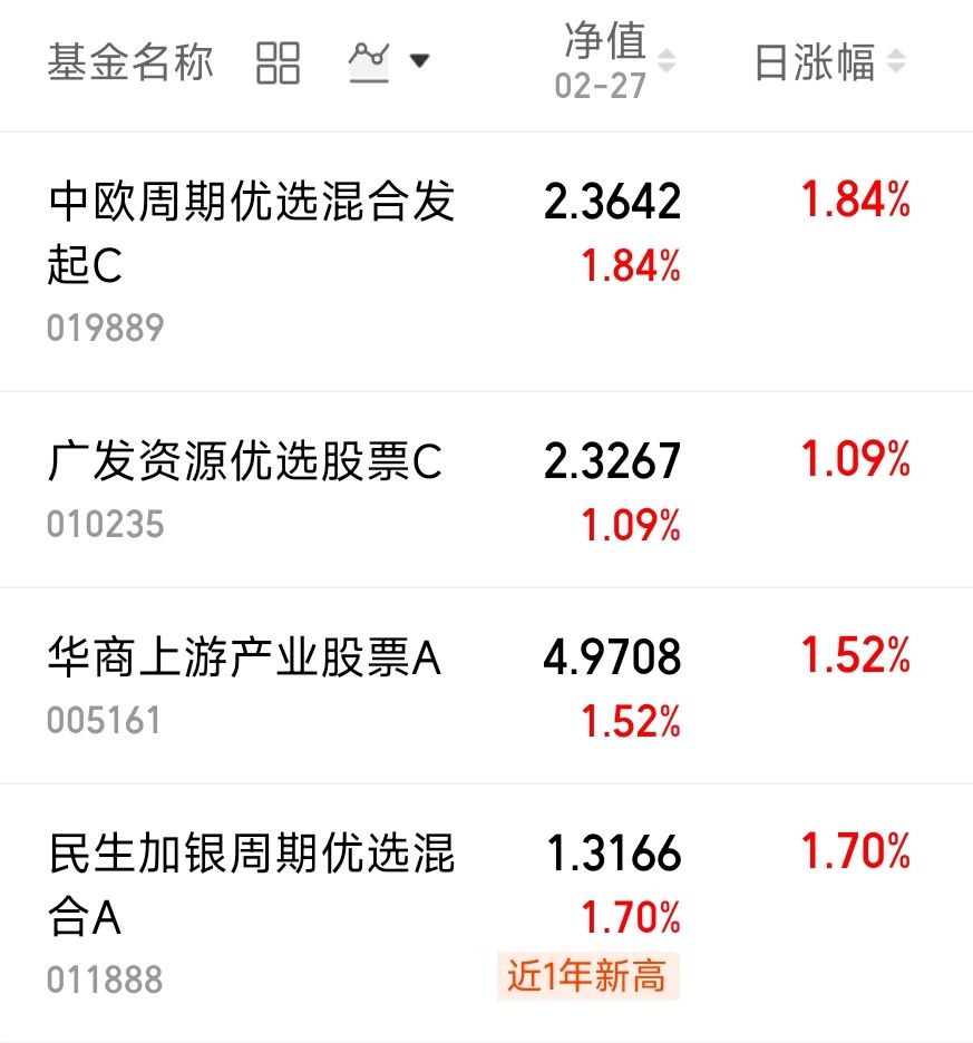 今天板块分化震荡,但整体而言有色板块继续延续上涨,是主线之一了。中欧周期优选混合基金今天跑赢有色板块上涨1.84%,$广发资源优选股票C(OTCFUND|010235)$上涨1.09%,$华商上游产业股票A(OTCFUND|005161)$上涨1.52%。