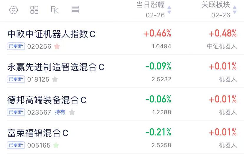 $德邦高端装备混合发起式C(OTCFUND|023567)$$永赢先进制造智选混合发起C(OTCFUND|018125)$$中欧中证机器人指数发起C(OTCFUND|020256)$