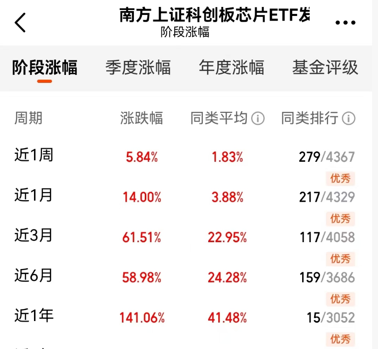 身边不少朋友都在讨论如何把握科技领域的动向,我觉得关注一些代表性的指数是个办法。$南方上证科创板芯片ETF发起联接C$(021608)近三个月收益61%,近一年收益141%,排名同类第一。它链接的科创板芯片指数,成分股是芯片各细分领域的代表性企业。投资这类指数产品,相当于同时关注了多个行业参与者,避免了单一标的风险。随着智能化进程的深入,芯片的应用场景只会越来越多。对于普通市场参与者而言,借助指数工具参与产业发展,可能是个省心省力的选择。#指数操盘手集结令#