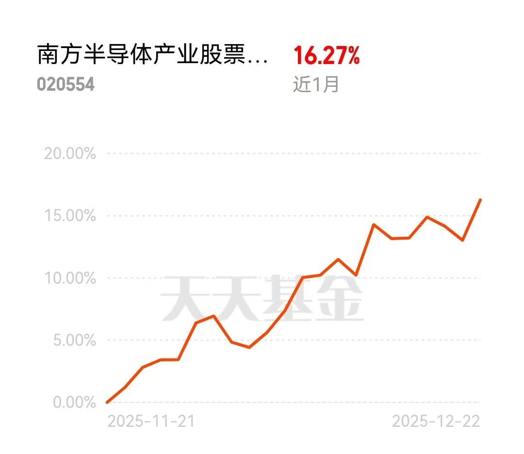 我刚入手了点$南方半导体产业股票发起A$(020553)半导体这领域其实一直有动静。现在市场上还能有点看头的,也就是半导体了,今天这位置我觉得可以。这基金专门投半导体产业链,特别是那些关键设备和材料环节,像光刻机什么的,现在行业周期有回暖迹象,加上内部替代进程在推进,这两边都有空间。为什么现在这种行情下要关注这个行业?未来的潜力摆在那里。看看业绩,近一个月涨了16%,近半年涨了54%,在同类里排前面。我自己是觉得,通过基金参与这个领域,比自己琢磨省心些。#长征十二号甲可复用火箭首飞引发关注#