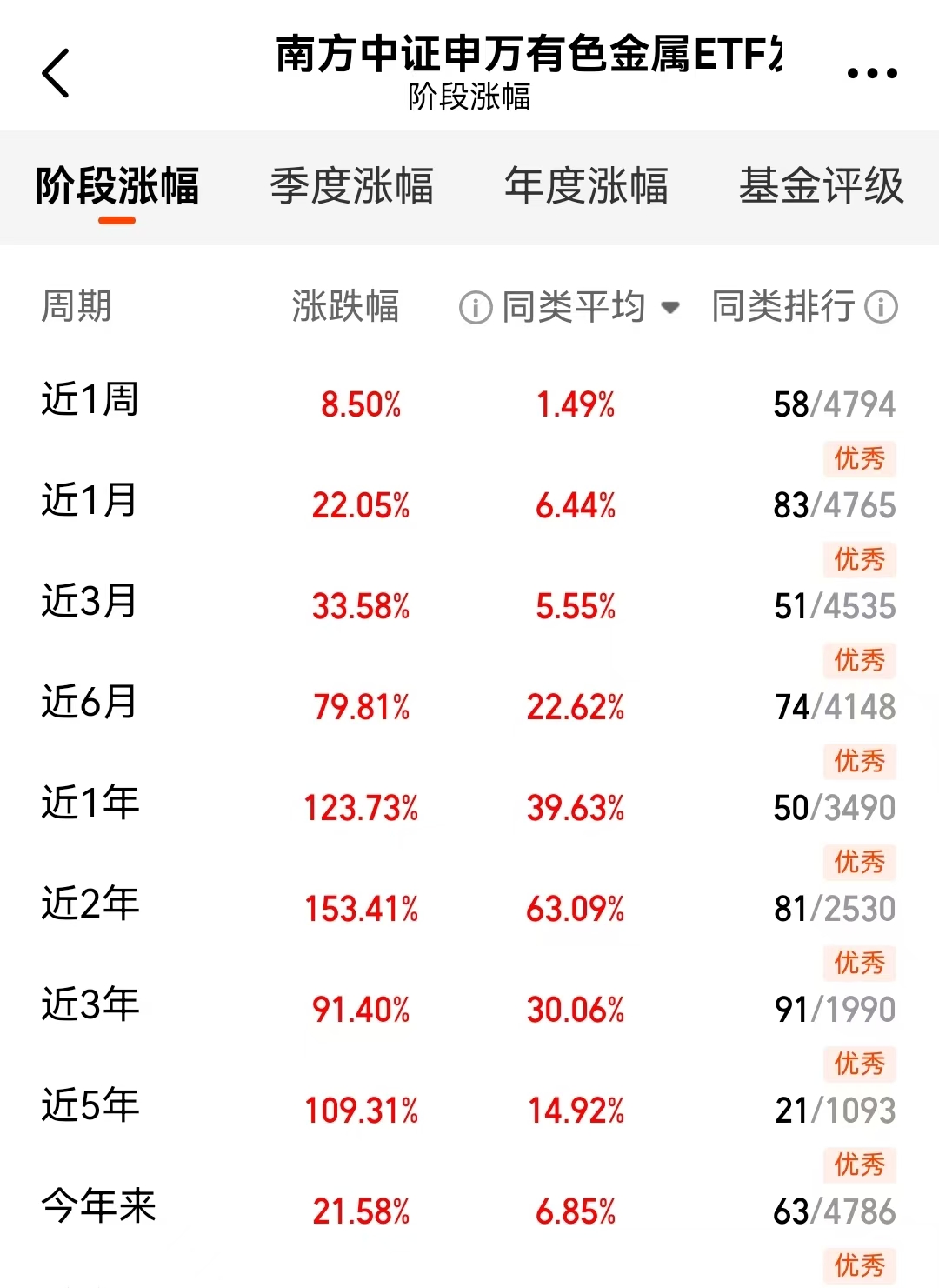 最后一点资金,我还是选择了买$南方中证申万有色金属ETF发起联接C$(004433)。理由很直接,因为它对应的板块是目前市场上最强势的领域,走势上一路新高。拉长时间看,板块指数去年实现了92%的上涨,强度毋庸置疑。为什么现在仍然觉得有机会?因为启动这轮行情的关键因素,比如供需关系的紧张和宏观环境的改善,目前还在持续。该基金近一年123%的增长率,是这种机会的直观体现。我个人倾向于认为,目前的上涨可能只是一个更长远故事的开篇。#继续新高!金价突破5200美元大关#