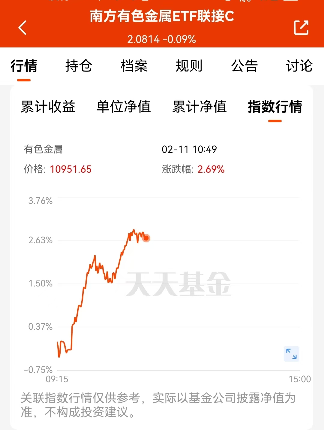 早盘看有色板块那走势,蹭蹭往上蹿,我这手就有点痒痒。$南方中证申万有色金属ETF发起联接A$(004432)这基金我盯了一阵子了,近六个月64%的收益确实香。现在这行情吧,感觉就像春天来了,各行各业都开始动起来了,那些金属材料自然少不了要用。可供给那边好像总差那么点意思,库存也不多,这架势看着还能再走一段。上午这走势挺给力,先买点看看。#下个风口赛道是谁?#