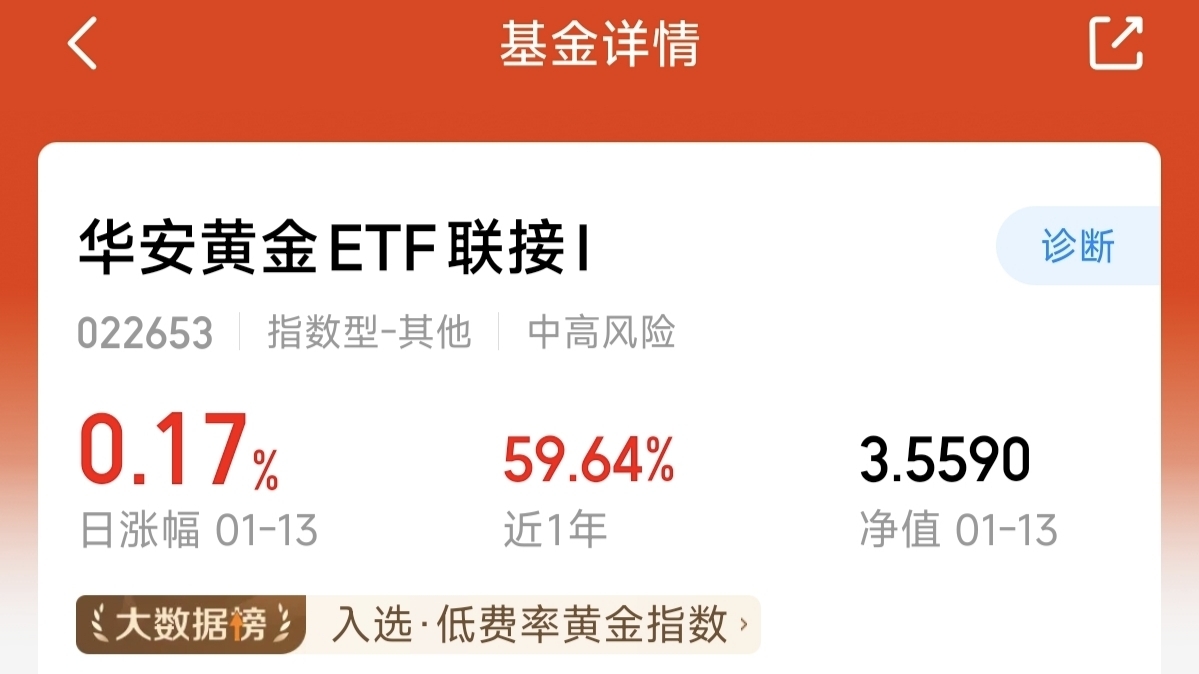 资产配置要均衡,$华安黄金ETF联接I$ 近一年涨 59.64%,低费率 + 稳收益,对冲风险超合适