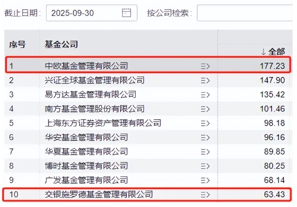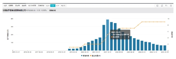 而曾经在2021年底管理FOF规模高达389.02亿元,稳居业内第一的交银施罗德基金,到2025年9月30日,管理的FOF规模已不足百亿,仅剩63.43亿元。