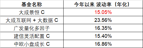 从今年以来的波动率控制水平来看,大成景恒 C以15.05%获得第1,凸显其在控制亏损方面的优势。