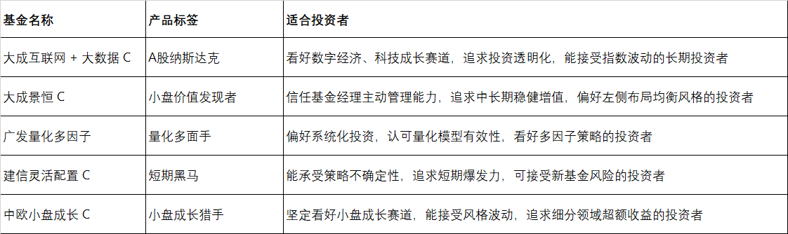 我们筛选了大成景恒 、大成互联网 + 大数据 、广发量化多因子、建信灵活配置 、中欧小盘成长这五只基金绩优产品,他们的业绩轨迹呈现出鲜明分化,既有短期一骑绝尘的 "冲劲派",也有长期复利显著的 "长跑者"。