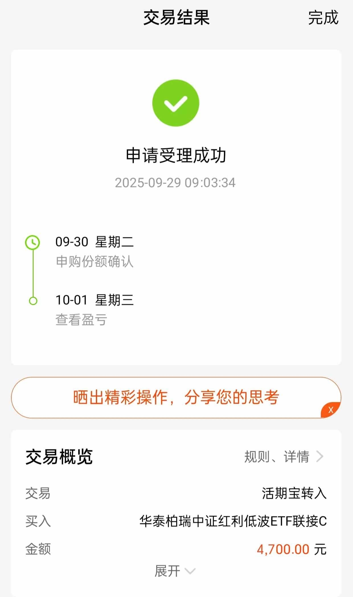 5年10.6万亿的分红回购,上市公司够大方,高股息资产有底气。现在市场波动大,避险需求起来了,$华泰柏瑞中证红利低波ETF联接C$(007467)红利低波C,刚好能跟上,稳拿分红还抗跌,适合咱们求稳的。