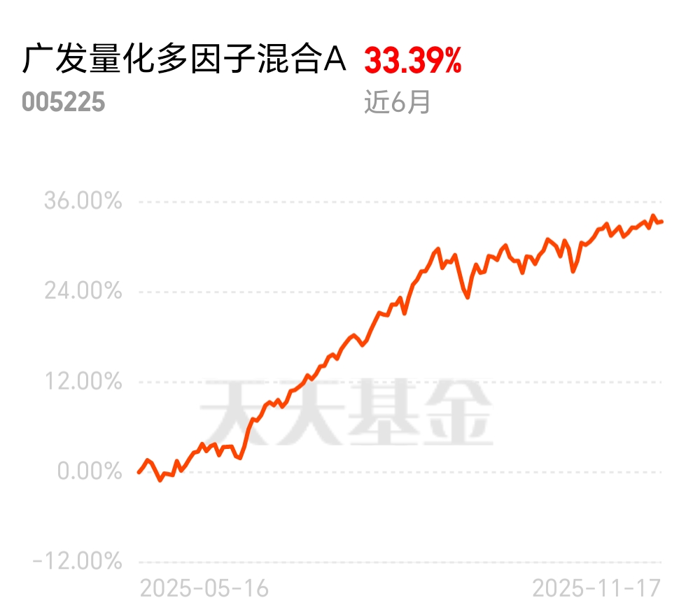 $广发量化多因子混合A$ 近一年超额有30%,量化模型还是牛的,直接钱投进去不慌