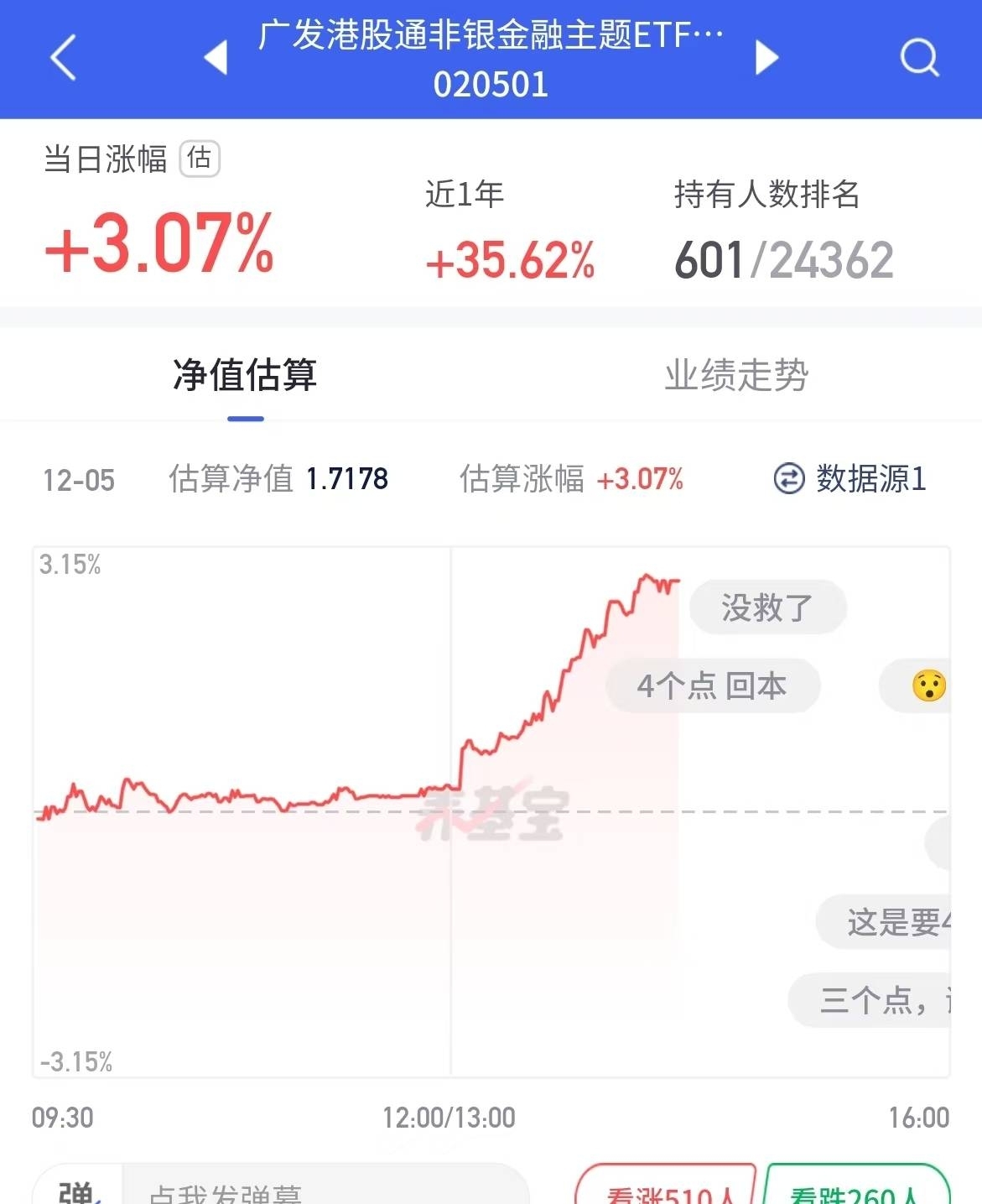 幸好前面非银回调的时候我都在,我觉得$广发中证港股通非银ETF发起式联接C$ 今晚少说2个点!