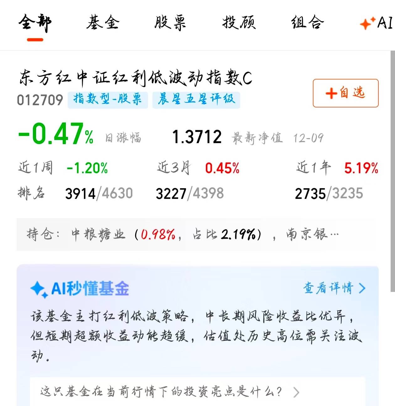 回调其实是低位布局的好时机,加仓东方红中证东方红红利低波上车,红利策略的防御属性保障收益稳定,今年来3.36%的表现确实亮眼。