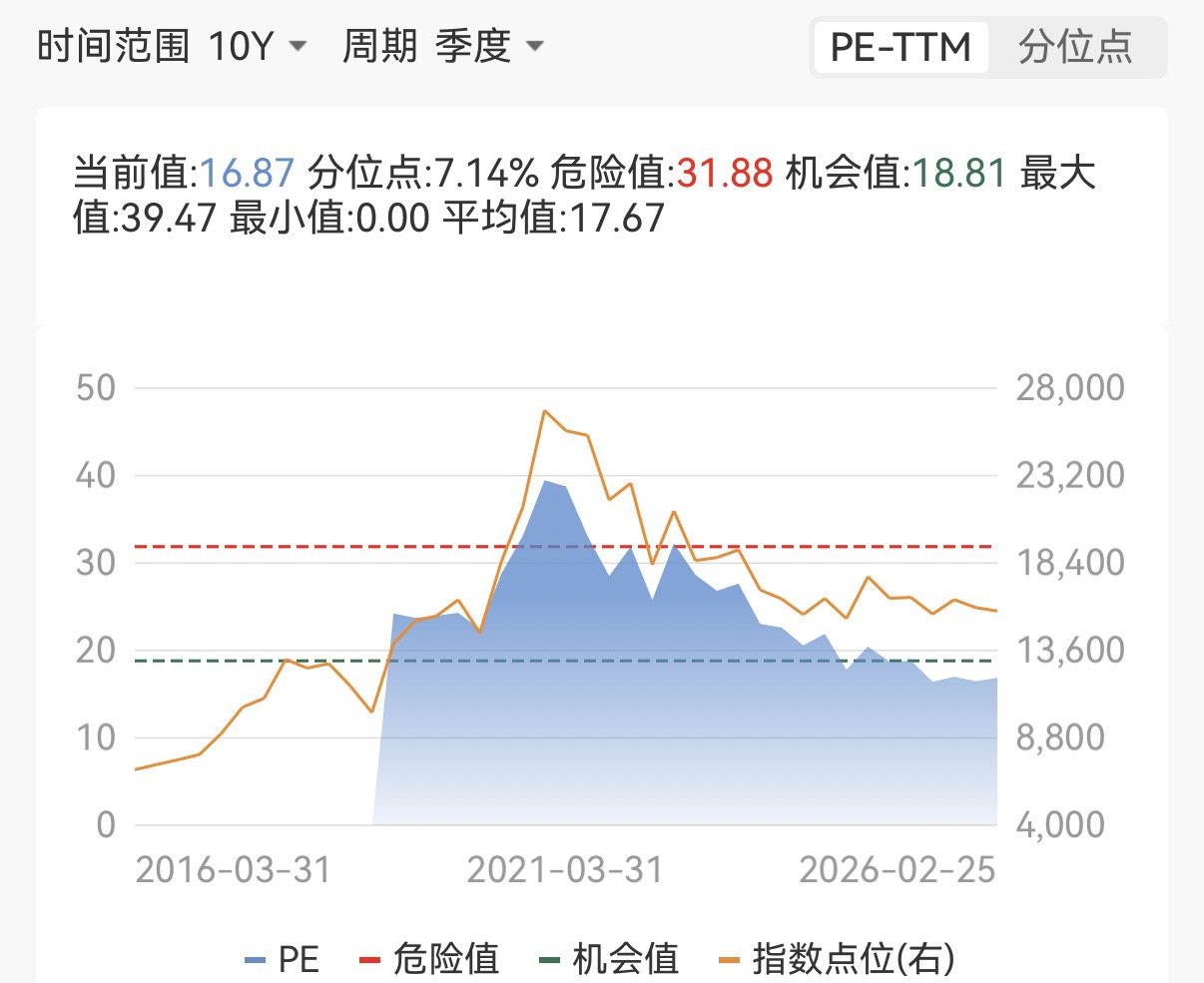 抛开宏观逻辑,单看估值,消费板块的吸引力就更直观了。经过过去几年的调整,消费板块的估值已经被压缩到了历史低位。截至2026年2月25号,中证消费50指数的最新的市盈率为16.87倍,其近十年的估值分位数仅为7.14%,意味着比过去十年里超过90%的时间都要便宜。这个估值水平,与市盈率动辄上百倍的科技板块相比,性价比凸显;即便是与已经涨过一波的化工等顺周期板块相比,消费的“水位”也明显更低。