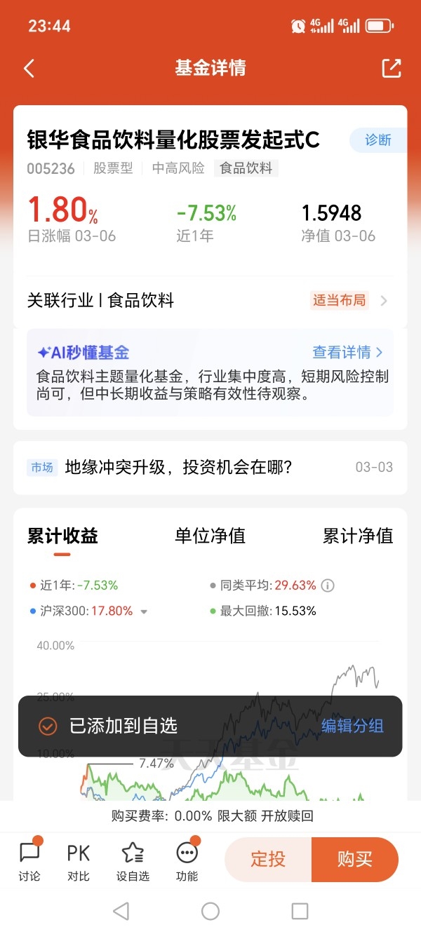 所以我关注了银华食品饮料量化股票发起式C(005236),因为银华基金是老品牌,值得信赖。@银华基金