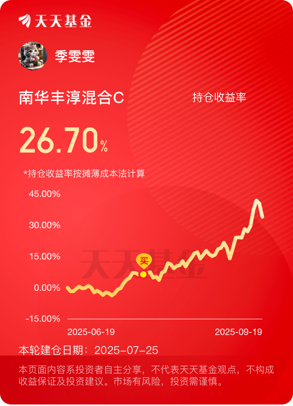 当时选这个看中的就是这基的弹性,才能让我在这波牛市里挣了不少呢,回调就是加仓的好机会 $南华丰淳混合C$ #晒收益#