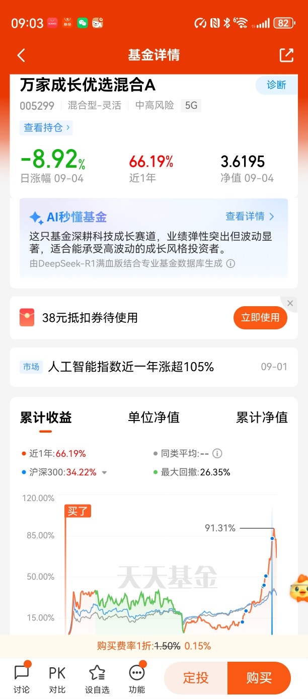 $万家成长优选混合A[005299]$ 谢谢经理,落袋为安。