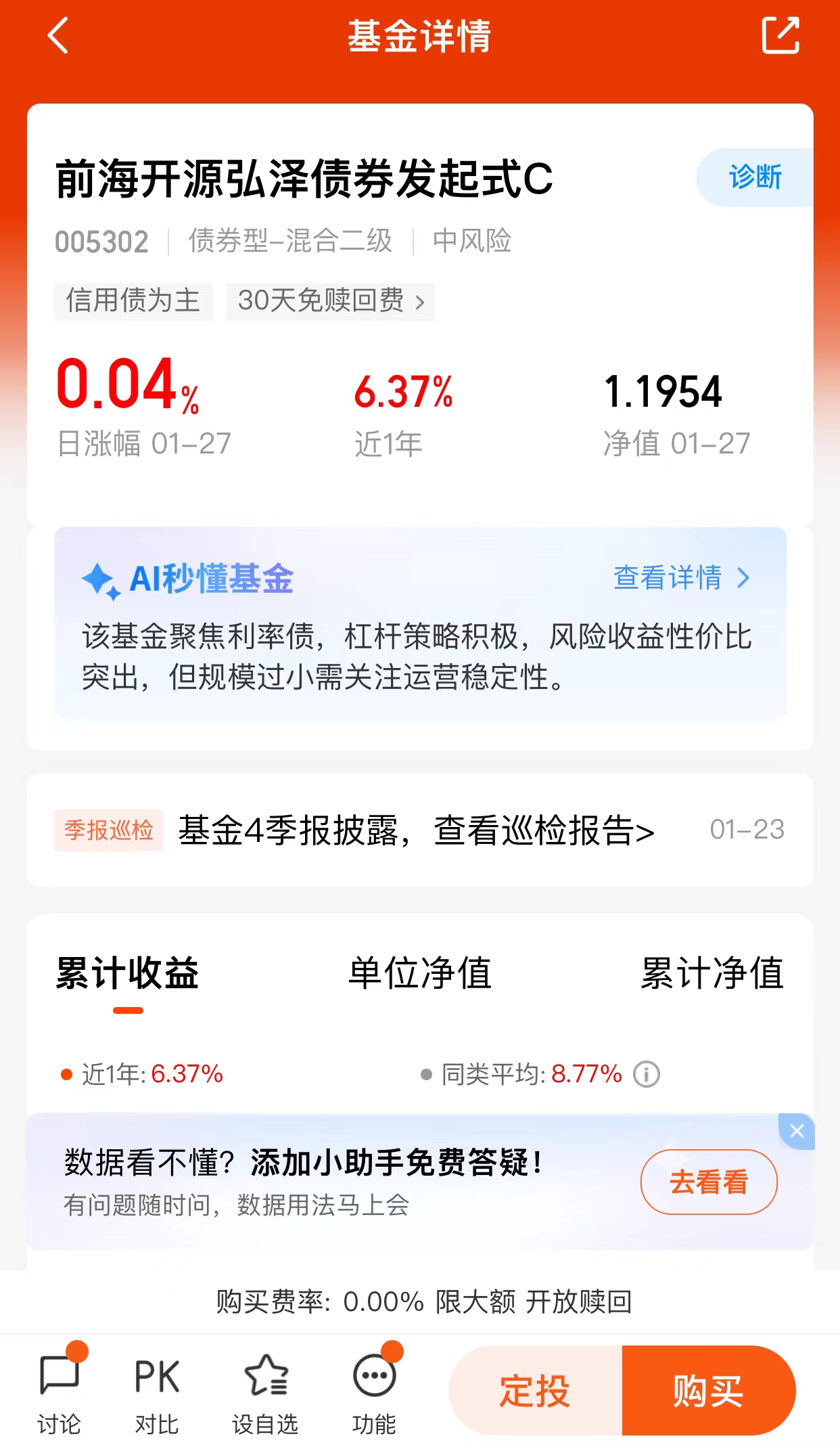 #底仓资产大PK#我将$前海开源弘泽债券发起式C(OTCFUND|005302)$作为底仓资产。该基金成为当前市场环境下我构建稳健投资组合的“压舱石”策略。我认为底仓的核心要求是稳健、低波动、能提供基础收益并具备一定增值潜力,而这只基金的特性完美契合了这些要求。