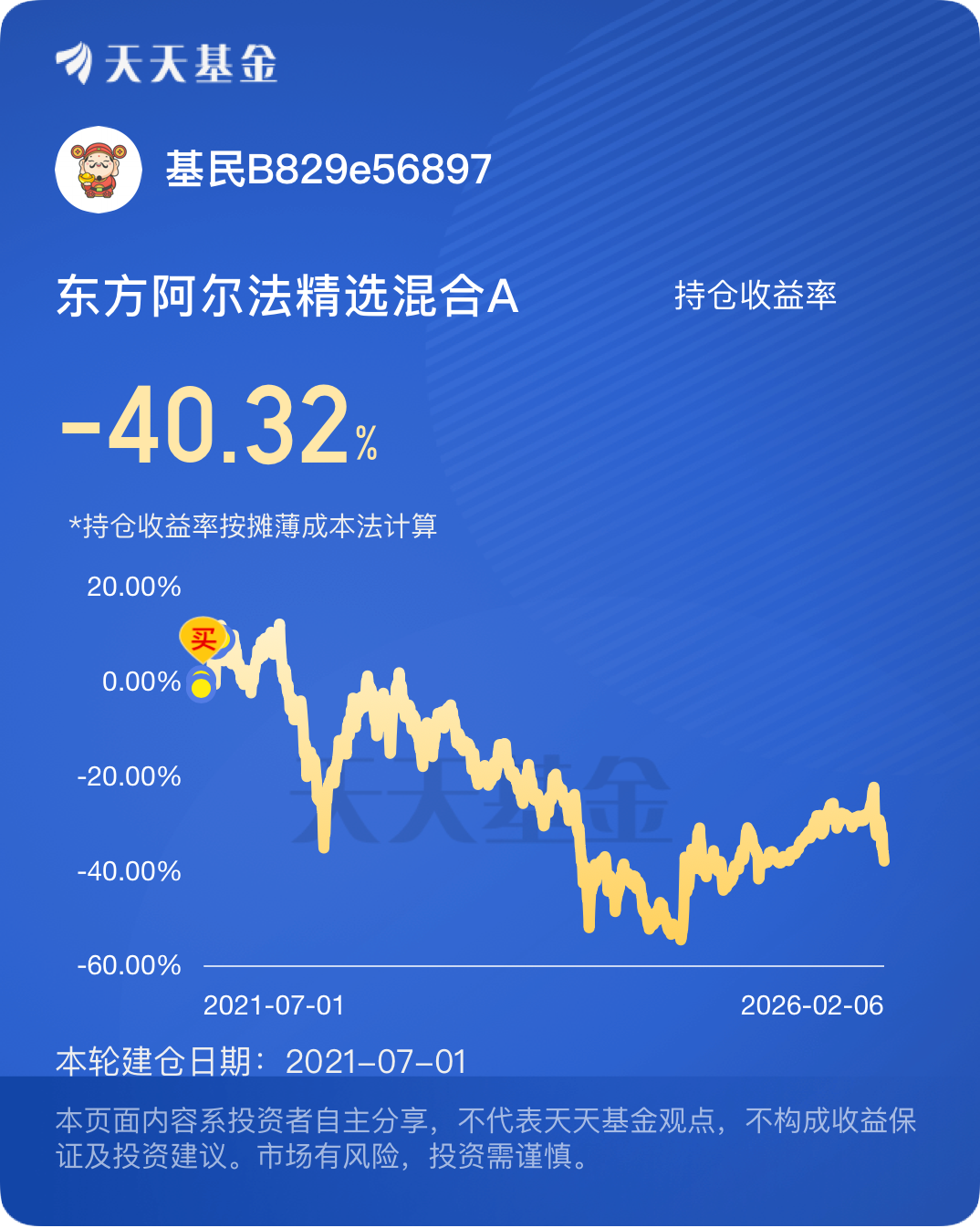 $东方阿尔法精选混合A$拿着基民的辛苦钱收着管理费,投资近五年时间还亏损-40%