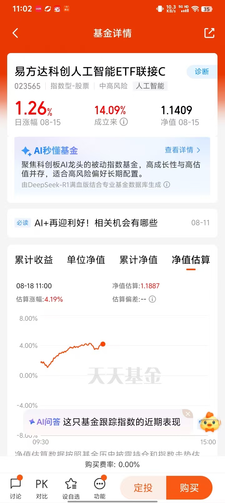 $易方达科创人工智能ETF联接C(OTCFUND|023565)$