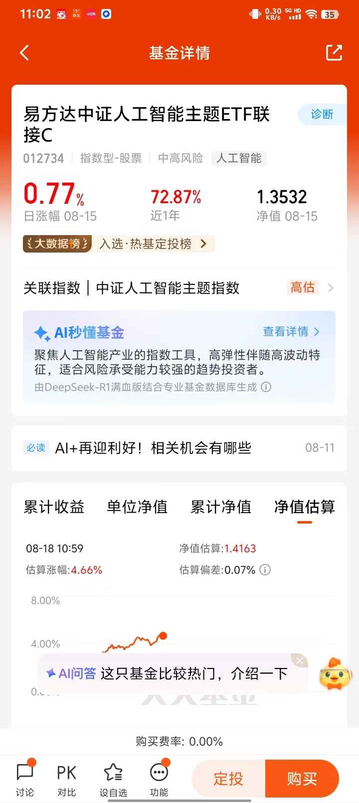 $易方达中证人工智能主题ETF联接C(OTCFUND|012734)$