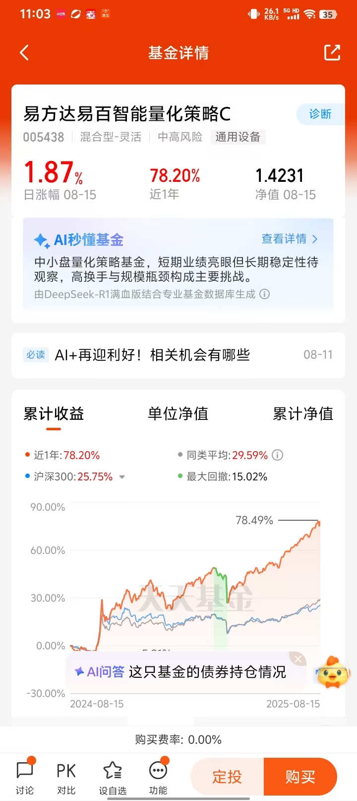 $易方达易百智能量化策略C(OTCFUND|005438)$