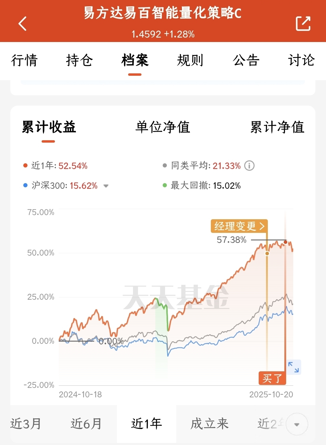 最近两天股市经过调整之后,开启反弹模式,连续两天上涨。$易方达易百智能量化策略C$ 基金采用优质策略,长期表现优于大盘,牛市期间更能放大收益。其量化模型通过高频调仓灵活应对行业轮动,持续跑赢市场波动。该产品特别适合牛市环境,能够敏锐捕捉上涨机会,获取超额收益,是牛市中有效的涨幅放大器。