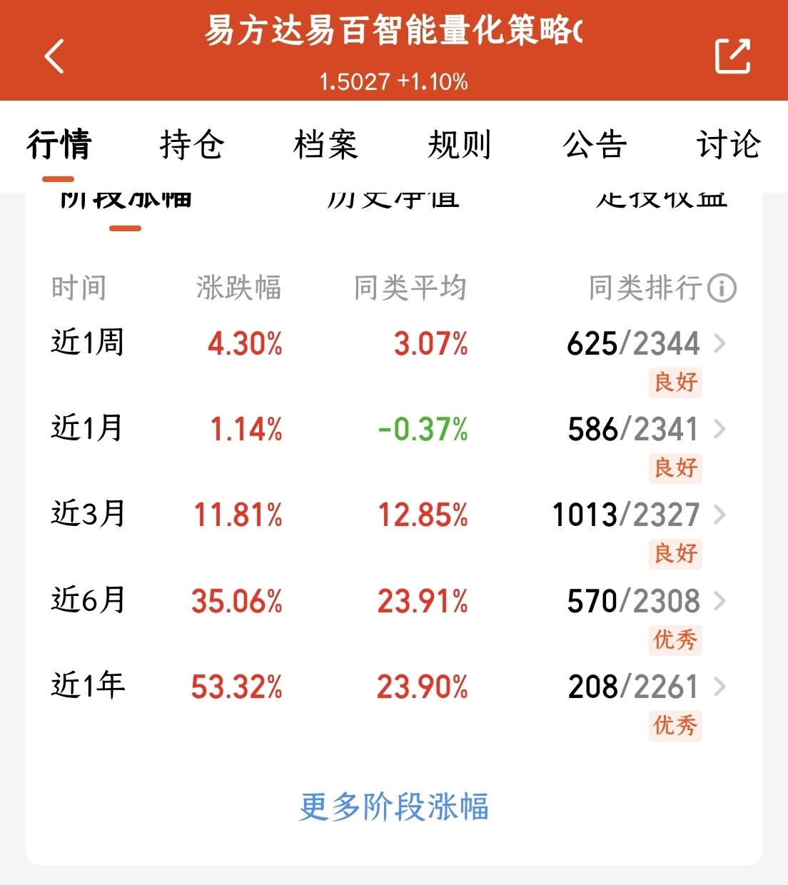 今天股市行情不错,直接跳空高开,科技板块也是继续领涨。$易方达易百智能量化策略C$ 目前也回本了,该基收益不错,最关键的是回撤控制的比较好,修复起来很快。在牛市行情中,是很好的放大器,稳固收益,抵御风险!