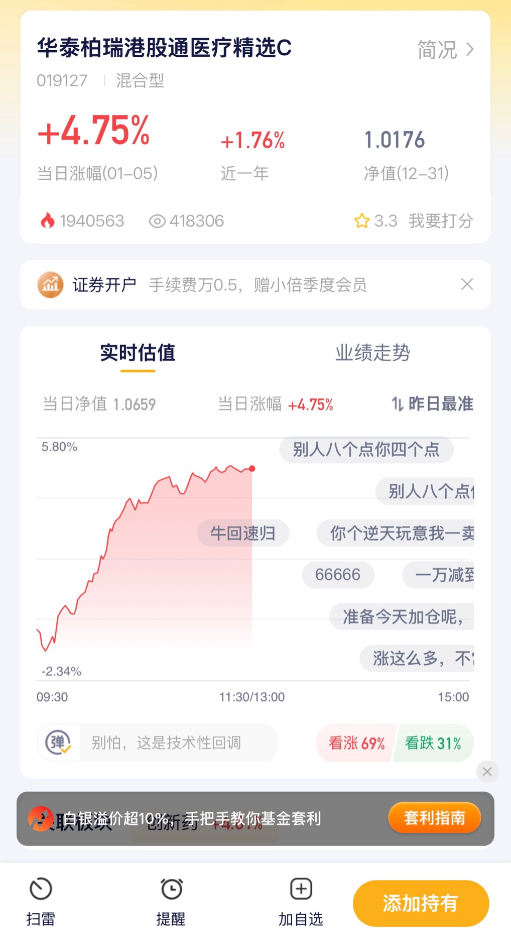 $华泰柏瑞港股通医疗精选混合发起式C$ #开门红!A股重返4000点#