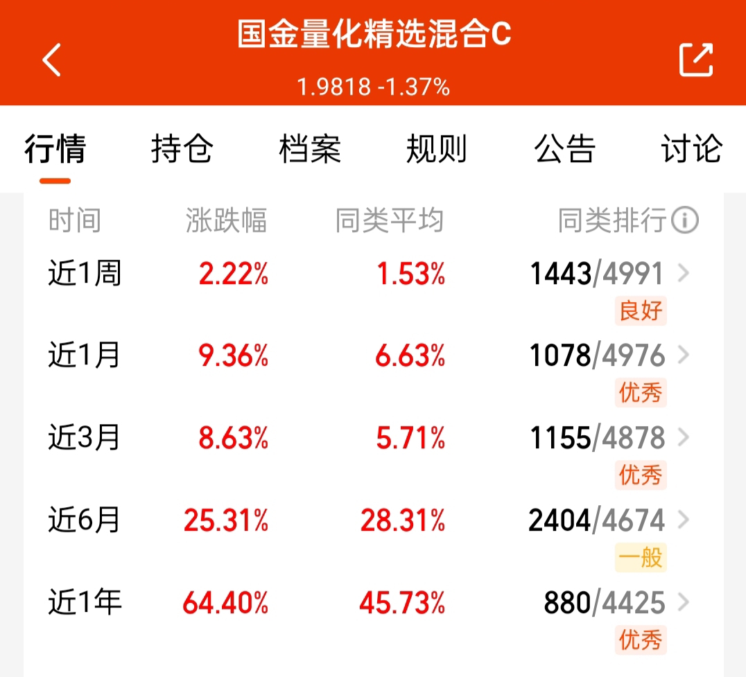 今天又是继续吃肉,还拿了些$国金量化精选混合C$ ,已经不限额啦,节后8天涨了7天了,和量化多因子同策略的