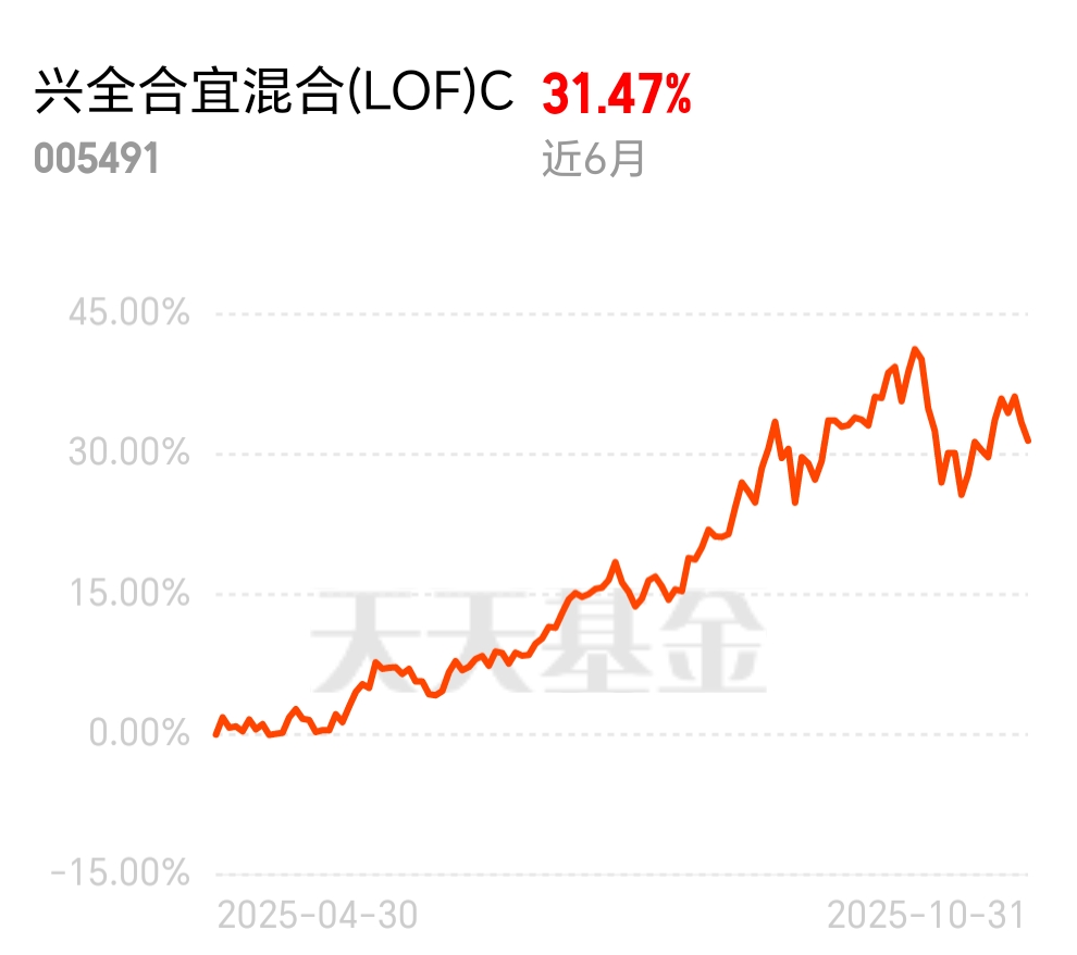 $兴全合宜混合(LOF)C$近6个月收益31.47%,集中于电子、医药等成长板块