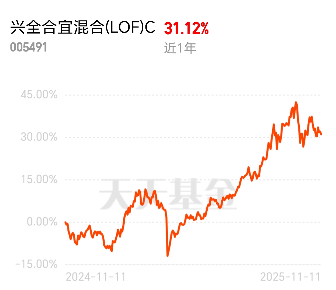 近期市场出现一定的调整,正是布局时机,$兴全合宜混合(LOF)C$ 近一年涨31.12%,很优秀,回撤控制也稳,可以逢低补点!