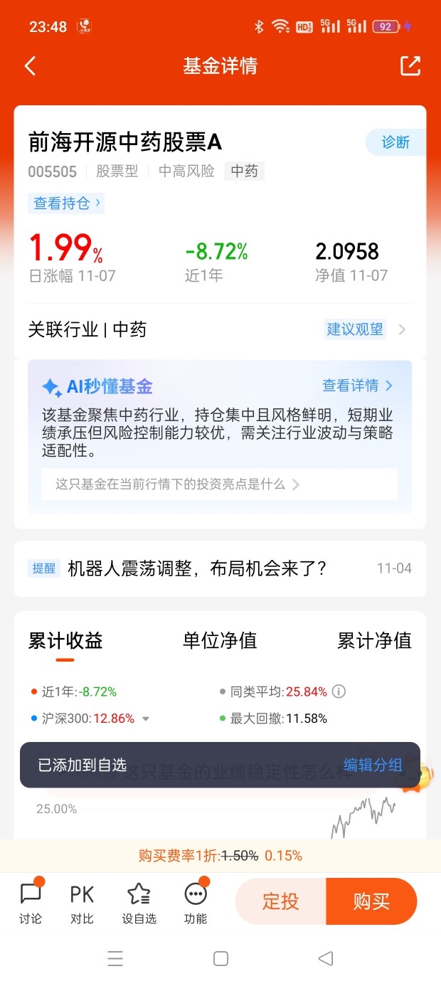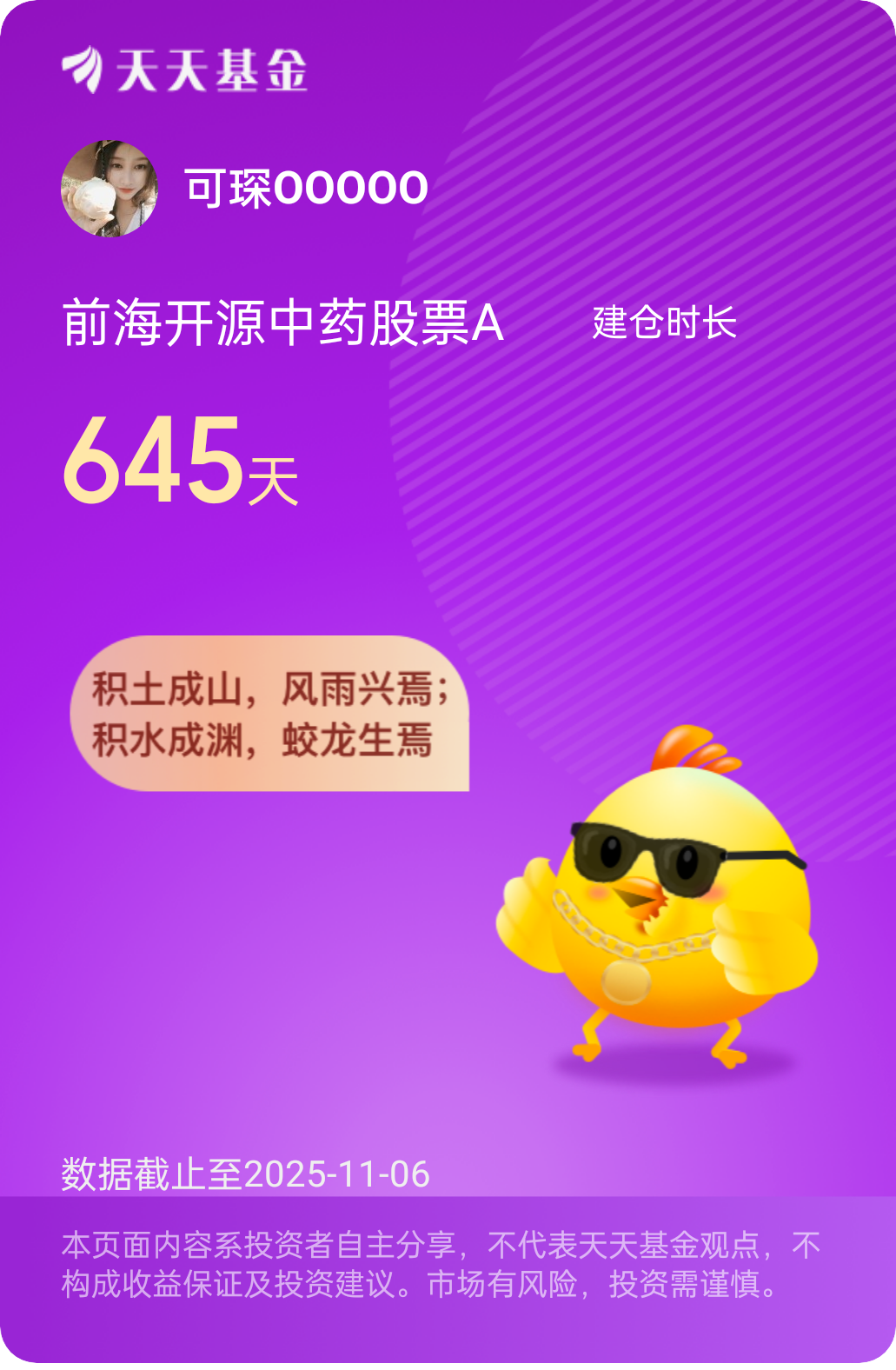 持有前海开源中药股票A已经645天,账户里还浮亏两个多点,说完全不在意是假的,但心里却意外地踏实。周围炒短线的朋友今年频繁追涨杀跌,反而被市场折腾得够呛,对比之下我这份“被套”显得安静许多。