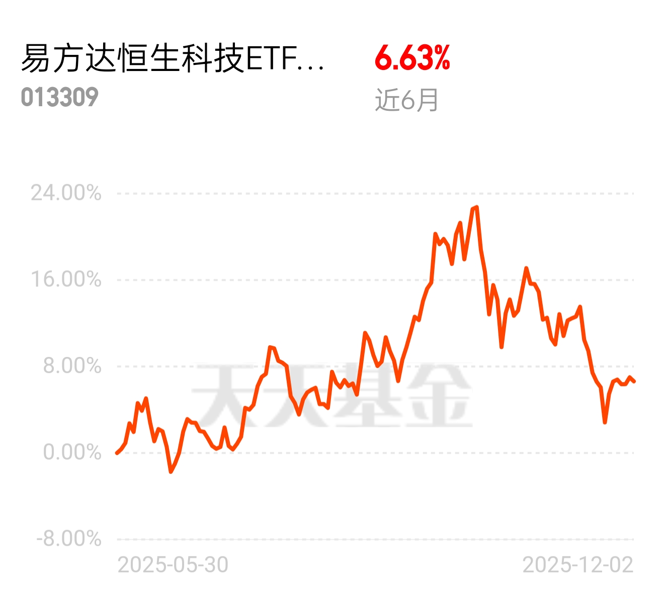 恒生科技指数估值仍处历史低位,低于海外同类科技指数,安全边际充足。易方达恒生科技 ETF 联接 (QDII) C 近 6 个月 6.63%,估值修复空间大,性价比超高。$易方达恒生科技ETF联接(QDII)C$