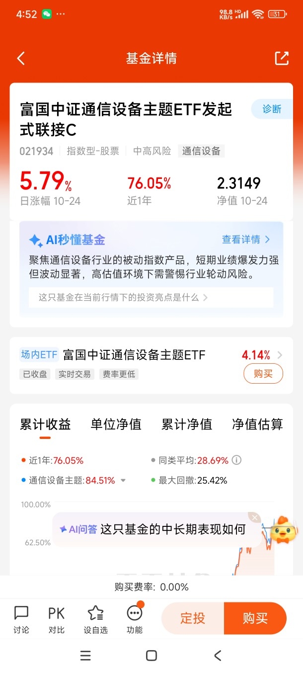 刚把中航新起航C的仓位匀了一部分到富国中证通信设备主题ETF联接C,近6个月涨了