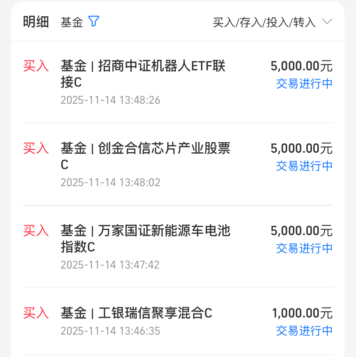 十五五强调科技自立自强,大基金三期已明确将半导体材料与设备列为核心攻坚领域!战略高度不断上升,没理由去看空半导体。另一方面,不管是存储芯片还是算力芯片,在AI大浪潮中的需求确定性很高,有需求就有业绩,有业绩预期就有炒作空间。短期回调无非就是获利盘兑现,但不改科技发展大势。回调我也视为加仓机会,今天我直接上了2000元银河创新成长混合C。
