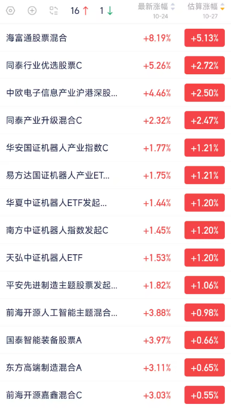 机器人基金估值盘后快报,收益早掌握