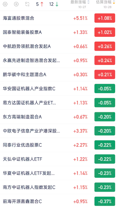 机器人基金估值盘后检阅,收益早知,基金甄选