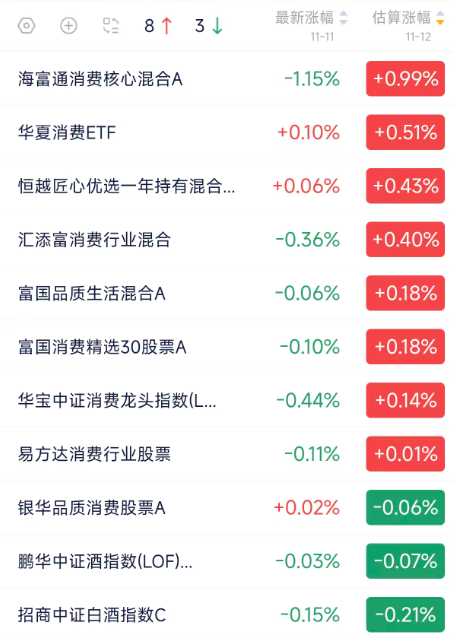 消费行业基金估值盘后快报,收益早掌握