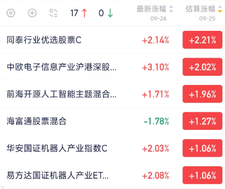 机器人基金估值午间检阅,快捷查看涨跌,甄选真金