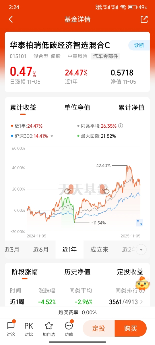 谁还没注意到机器人赛道的火爆行情?作为新质生产力的核心代表,现在的机器人行业政策红利不断释放,核心零部件国产化率稳步提升,不管是工业自动化还是服务机器人,市场需求都在快速增长。特斯拉Optimus机器人2025年要量产,宇数科技第四季度上市也会带动相关产业链发展,这些利好消息都让机器人行情越来越有看头。我一直持有华泰柏瑞的基金,它在低碳经济和智能科技领域的布局特别贴合当下的市场趋势,持仓的优质企业很多都深度参与机器人产业链。基金分散投资能有效降低风险,不用怕单一股票波动太大,对于想长期布局热门赛道的朋友来说,这样的基金确实是个不错的选择,既能跟上行业增长,又不用承担太多风险。
