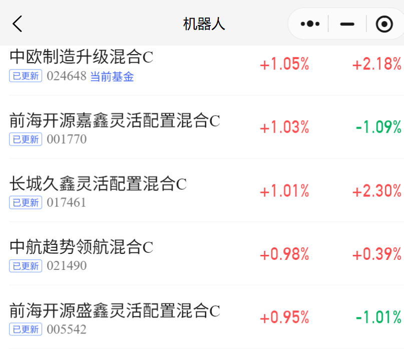 受益于重仓制造业升级与智能装备,$中欧制造升级混合发起C(OTCFUND|024648)$今日上涨1.05%,业绩稳健,持续捕捉工业成长机会。