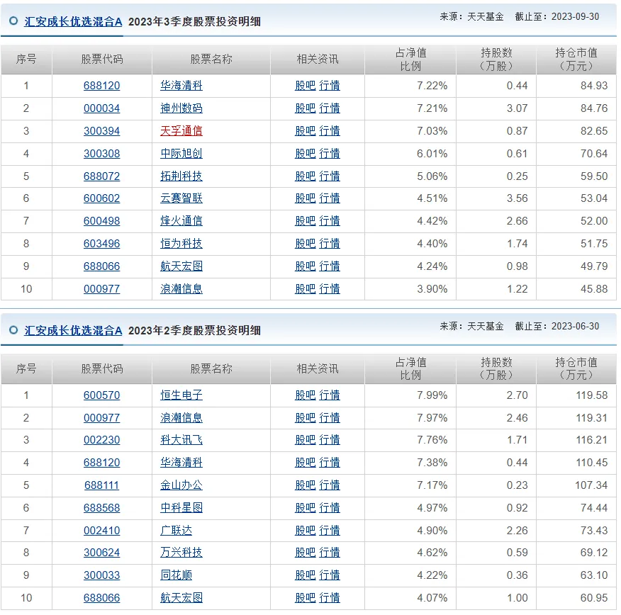 数据来源:基金2023年二季度和三季度季报