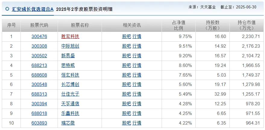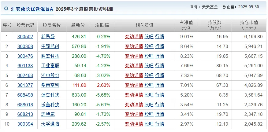 同时,上半年基金重仓方向仍聚焦并深化在人工智能领域的投资布局,适度增加在AI算力基础设施(如光模块、PCB等)以及业绩兑现能力更强的AI应用龙头公司的权重,以更精准地捕捉产业链中盈利增长最具爆发力的环节。基于对市场的焦点正向海外算力供应链、核心硬件设计以及垂直应用迁移的判断,三季报显示,汇安成长优选混合又进行了少量优化:持续重点布局海外算力产业链相关公司(如光模块、PCB、服务器设备等),并适度增加了部分半导体公司权重,以捕捉产业链中盈利爆发力和技术壁垒高的环节。