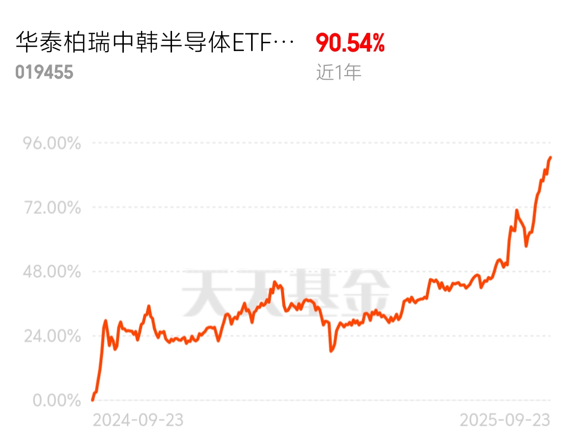 韩国股市这么猛吗?中韩半导体更是亮眼,$华泰柏瑞中韩半导体ETF发起式联接(QDII)C$ 这只近一年快翻倍了!涨了90%多,这周也没停,又涨4.6%,AI需求真是带飞了存储芯片。