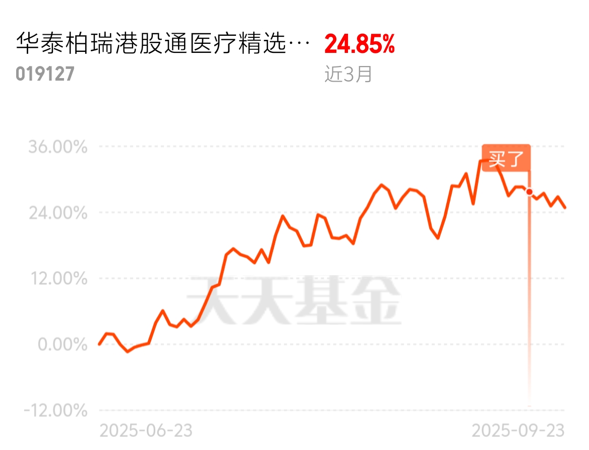 医药板块整体逻辑没坏,只是消化涨幅。$华泰柏瑞港股通医疗精选混合发起式C$ 近三个月24.85%的收益,证明扛住了考验。
