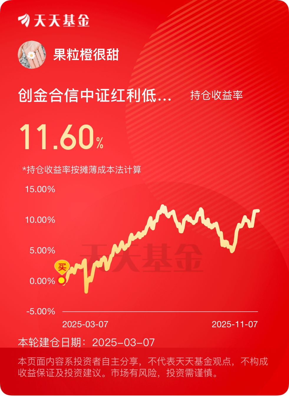各阶段业绩都不错,风险也较低,定投做长线了$创金合信中证红利低波动指数C$