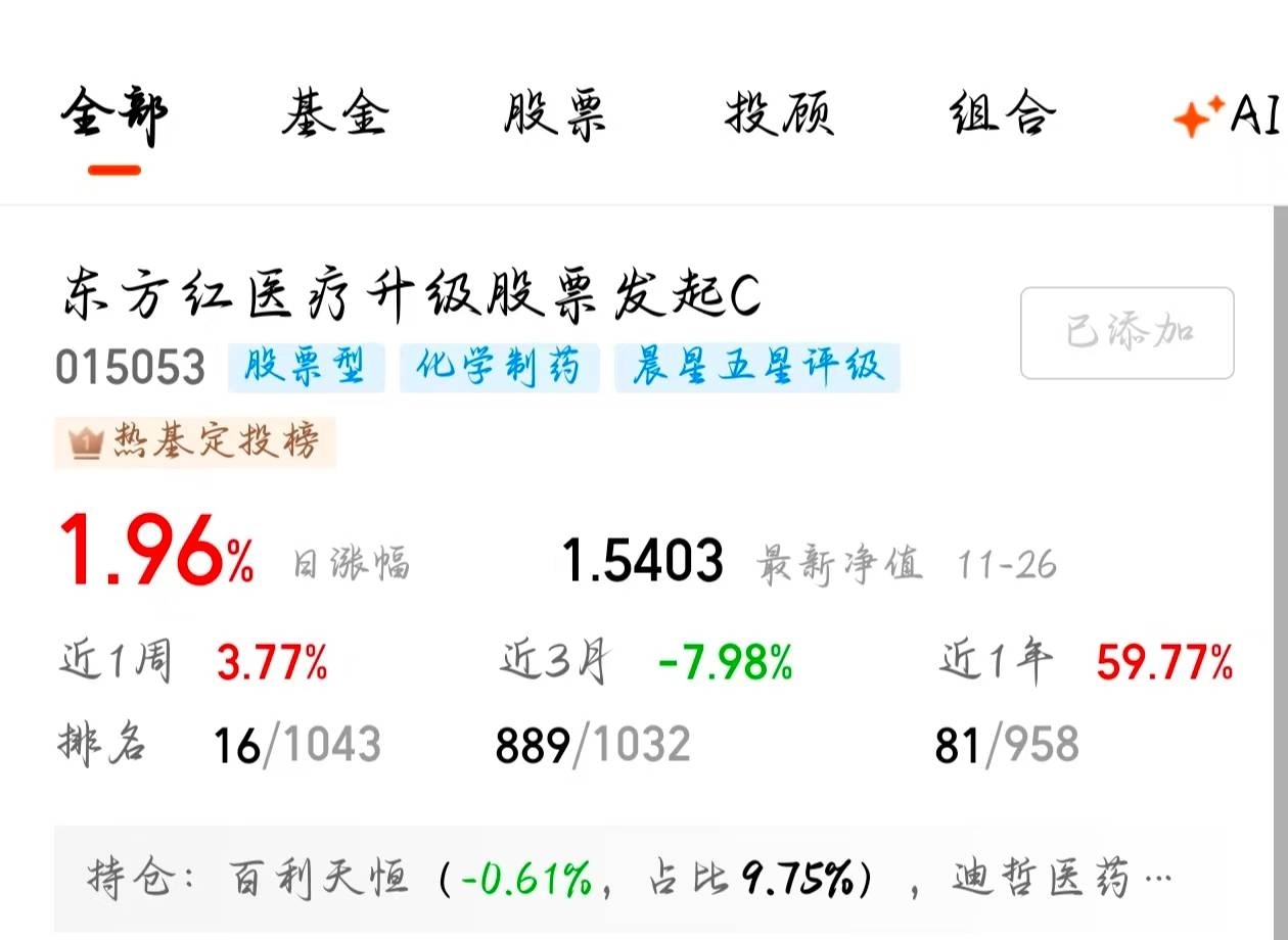 东方红医疗升级聚焦A+H创新药龙头,昨天强劲拉升1.96%,近六月收益11.56%领跑赛道,估值修复期配置正当时。