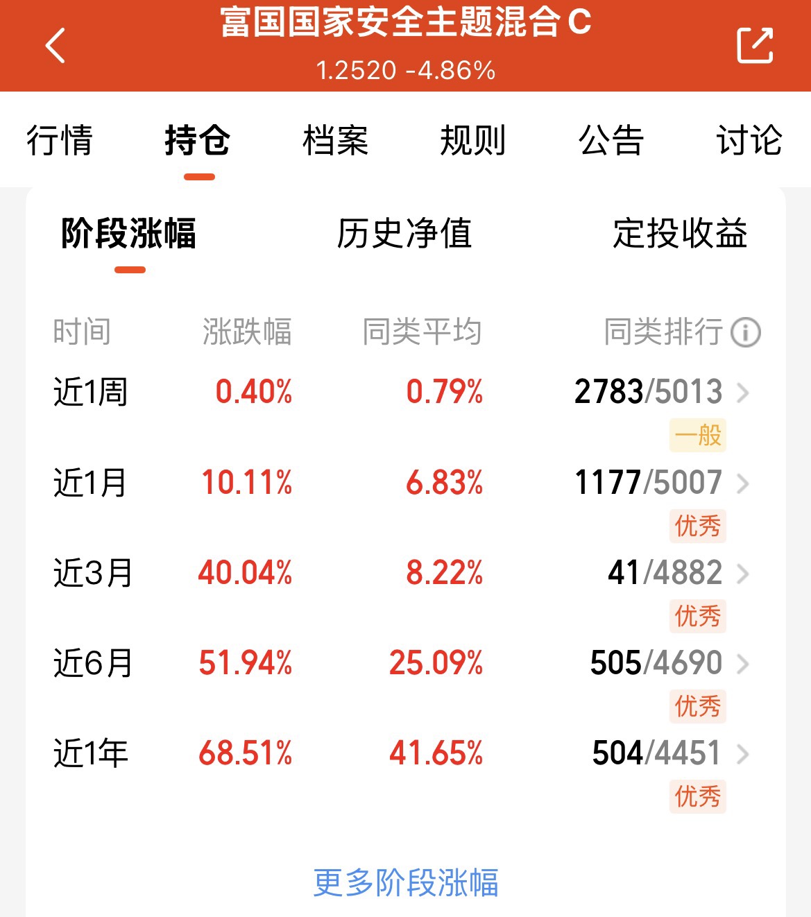 富国国家安全主题混合 C 超争气,近一年收益 68.51%,跑赢业绩基准 5.50%,近六月涨 51.94%,布局该赛道行情超稳