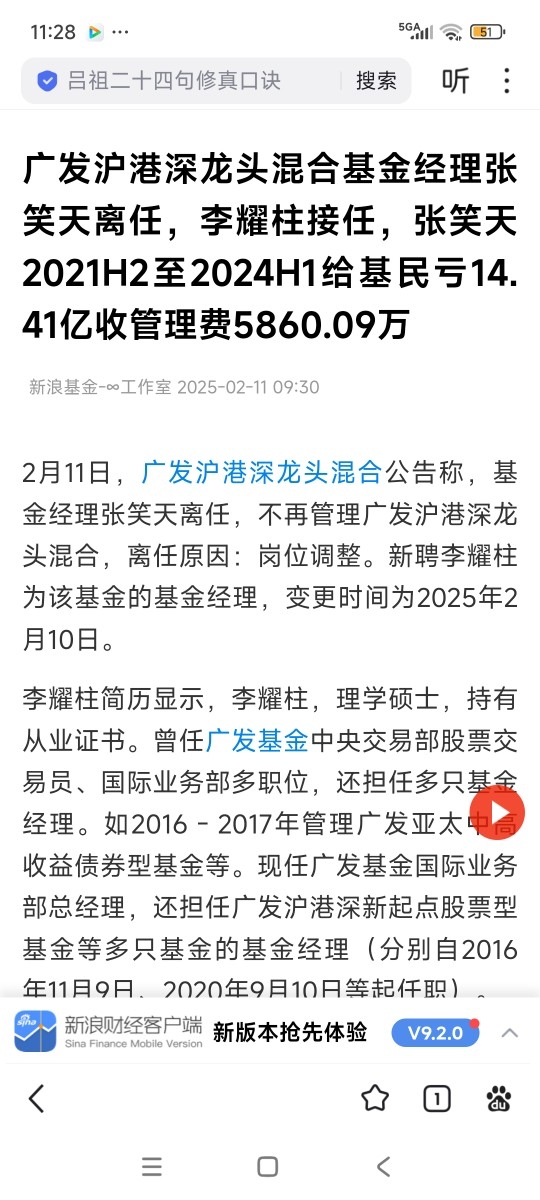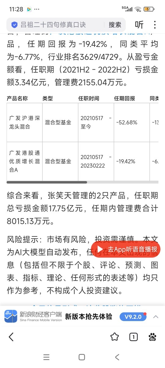 张笑天管理期间基金亏14.41亿 收8015万管理费,成立以来收益-39%