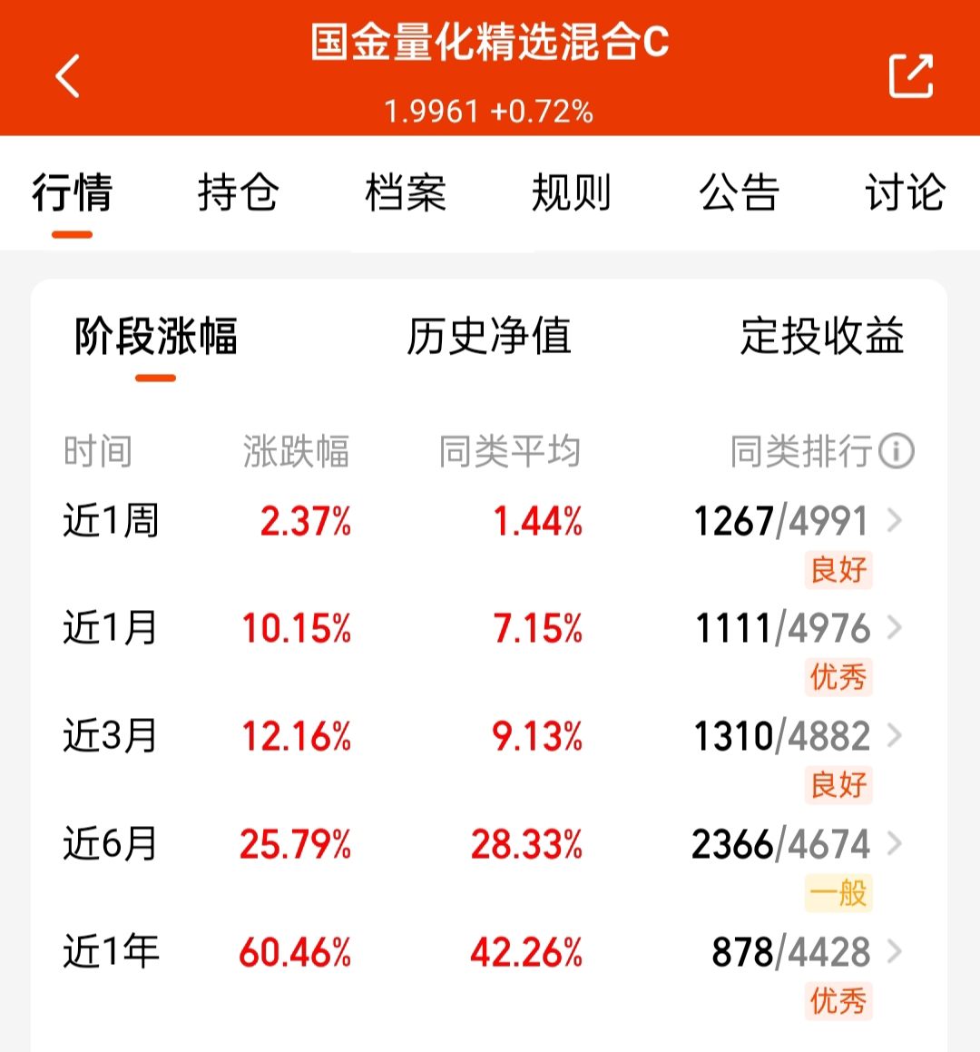量化基拿了些能涨抗跌的$国金量化精选混合C$ ,已经不限额啦,节后也吃肉7天了,各阶段业绩都不错