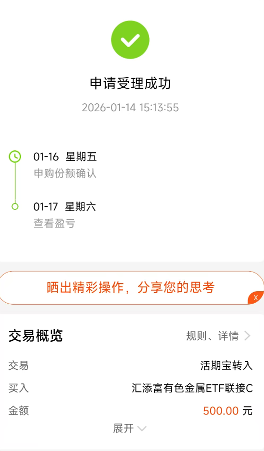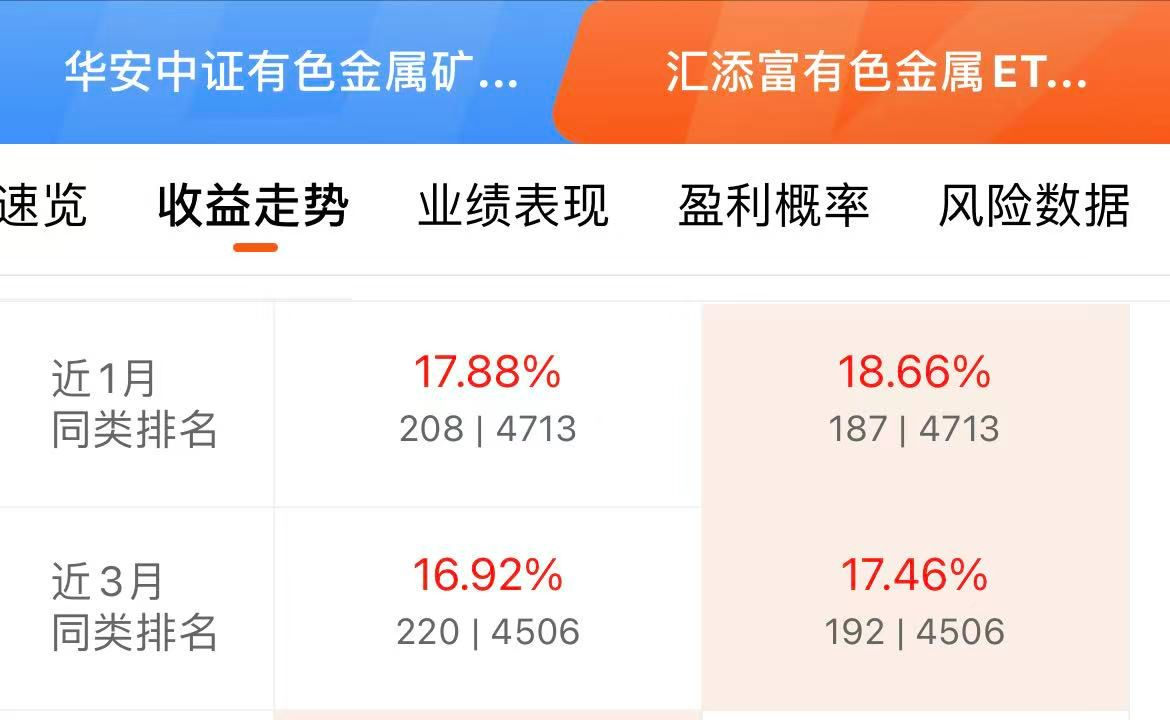 今天继续加$汇添富有色金属ETF联接C(OTCFUND|019165)$,昨天逆势上涨,今天继续上涨,已经连涨三天,近一个月+18.66%,近六个月+77.37%,近一年+100.38%,各阶段业绩表现优秀赚钱能力强,也是这两年的最强主席纳之一,这只基金紧密跟踪细分有色金属产业指数,聚焦上游资源片,其中含铜量更高,受益于AI产业发展、新能源转型、降息周期等多重利好推动,近五年来大幅跑赢大盘,不仅是最强主线,也是长期主线投资价值凸显,而且汇添富有色金属的综合费率同类更低,持有7天就免赎回费,性价比高操作灵活,可以有!