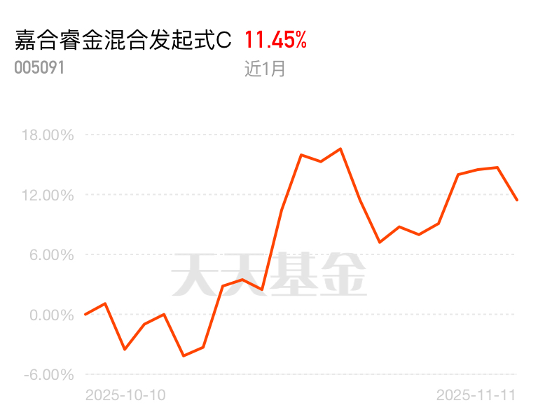 市场上关注科技基金的人越来越多,CPO和存储芯片作为热门细分,涨幅很诱人。嘉合睿金混合C就聚焦这些方向,近1个月涨了11.45%,差不多15个点的收益,想赚钱的可以关注。$嘉合睿金混合发起式C$